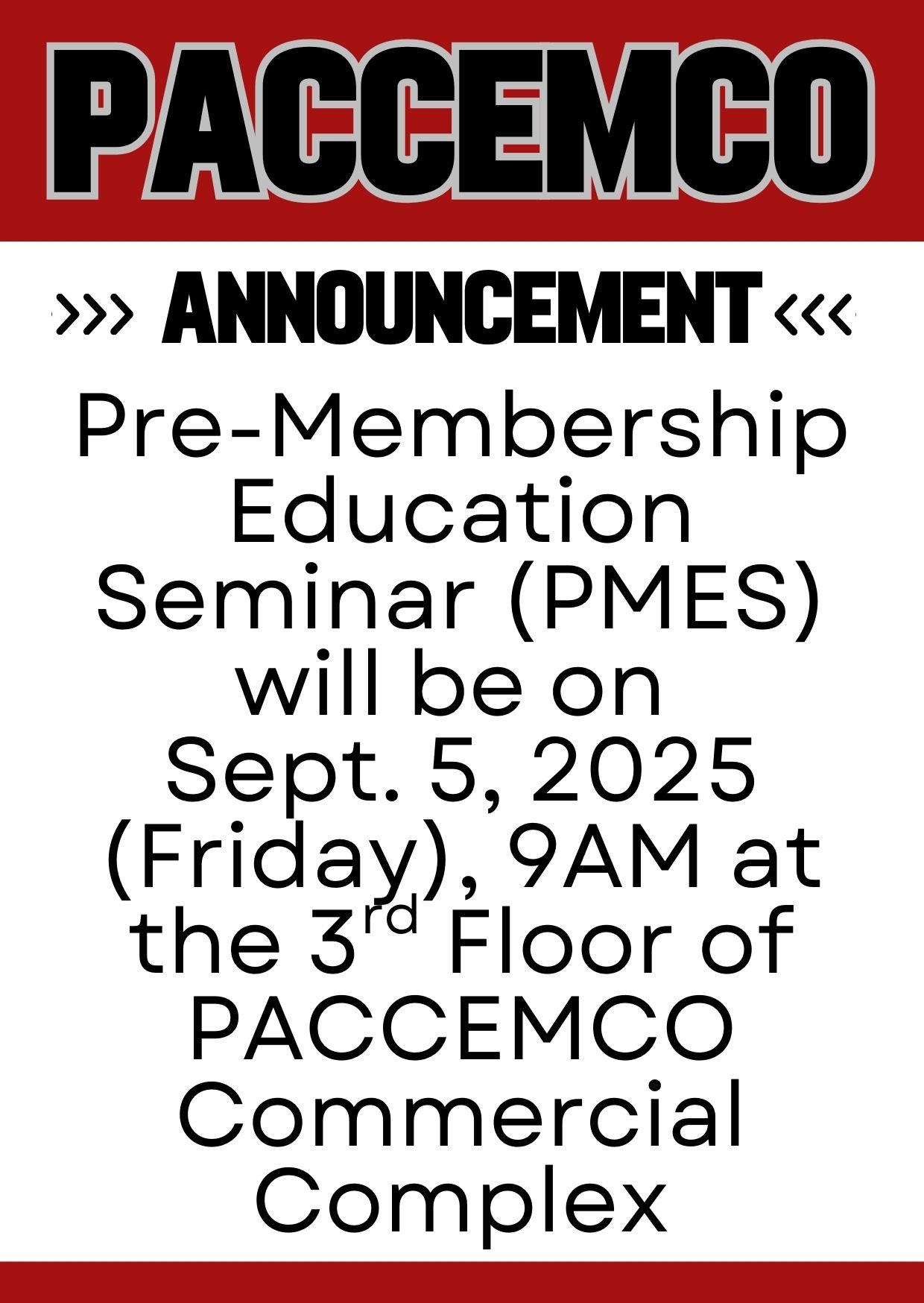 Pre-Membership Education Seminar (PMES) will be on friday, July 4, 2025, 9 am at the 3rd floor of PA...